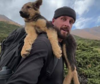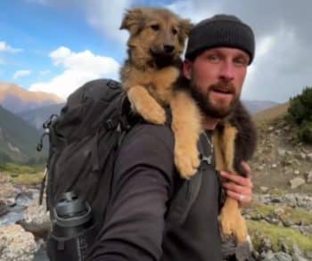 Beneath an endless stretch of sky and surrounded by the quiet strength of towering peaks, a simple hike turned into a life-changing moment no one could have planned. The mountain air was crisp and cool, carrying the scent of pine and earth along the winding trail. What began as an ordinary day outdoors soon became something far more meaningful when Sam crossed paths with a small stray puppy wandering alone. In that peaceful, rugged landscape, an unexpected connection was about to unfold.