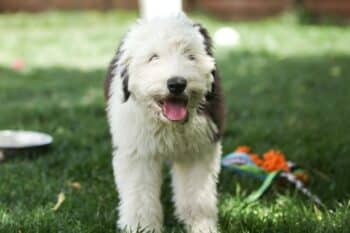An overweight Old English Sheepdog may have a less visible waist and rib definition. You should be able to feel their ribs without a thick layer of fat. Consult your vet for a proper evaluation and diet plan if your Old English Sheepdog is overweight.