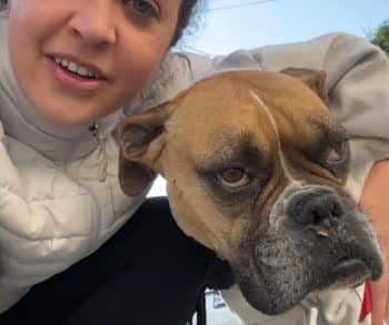 To everyone’s surprise, the determined Boxer stayed close behind them for the entire hike.