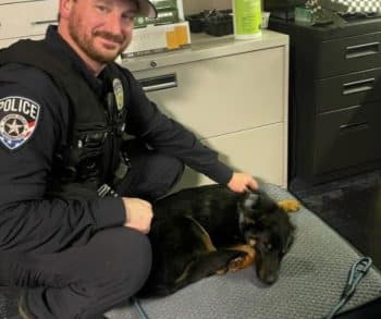 Officer McNabb responded to the call, and from the moment he saw Zeus, the situation became more than just another duty. Carefully approaching the frightened pup, he spoke softly, offering a sense of calm in an otherwise overwhelming moment. Zeus did not resist. Despite everything he had endured, there was still a flicker of trust in him.