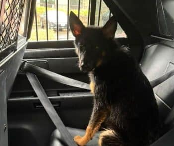 When officers arrived at the scene, they were met with a heartbreaking sight. Zeus, a young German Shepherd, had likely been left there for more than 24 hours. The rain had not stopped, and his small body showed signs of exhaustion. His fur was heavy with water, and his eyes reflected quiet confusion, as if he could not understand why he had been abandoned.