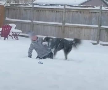 He loves playing with other dogs, bounding toward them with playful confidence. But perhaps his sweetest friendship is with a little boy who lives upstairs. The boy throws snowballs into the yard, and Levi chases each one with dramatic enthusiasm, as if every toss is the greatest game ever invented.