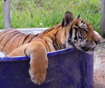The first time Maruay eased himself into the cool, sparkling water at his sanctuary, it was impossible not to feel emotional watching him. His powerful striped body moved with surprising gentleness as he tested the pool, then fully surrendered to it, splashing and paddling with pure delight. He swatted at the ripples like an oversized cub discovering a new toy, then rolled slightly to float, completely at ease. In that simple, playful moment, you could see a tiger rediscovering something he had been denied for far too long: freedom, comfort, and unburdened joy.
