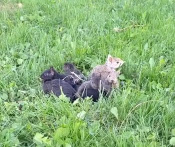 Credit: YouTubeCurious and uneasy, she went to take a closer look. What she found was heartbreaking. Seven baby squirrels lay huddled together on the ground, their small bodies pressed close. Their tails were twisted into a tight, matted knot of fur. They could not move. Every attempt to escape only pulled them tighter together.