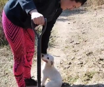 As they prepared the resting place, the stillness of the moment was suddenly broken. A faint whimper carried through the air. It was soft but unmistakable. Moments later, a small puppy appeared from the surrounding brush.